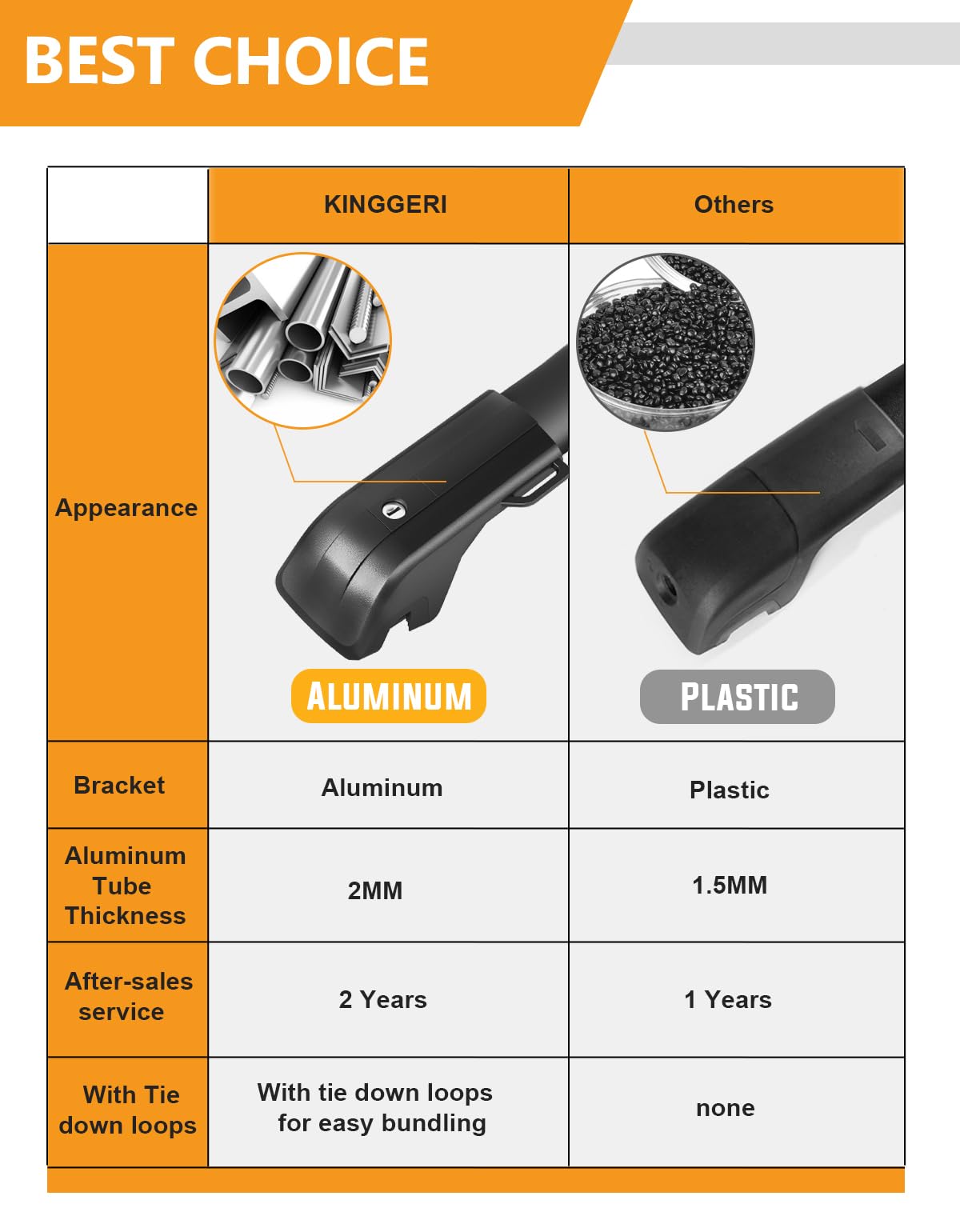 - 【With Tie down loops】 The four brackets of the KINGERI roof luggage rack crossbar are all designed with Tie down loops that can accommodate ropes up to 1/4" (6mm) wide.This design allows you to easily secure items to the roof of your car.