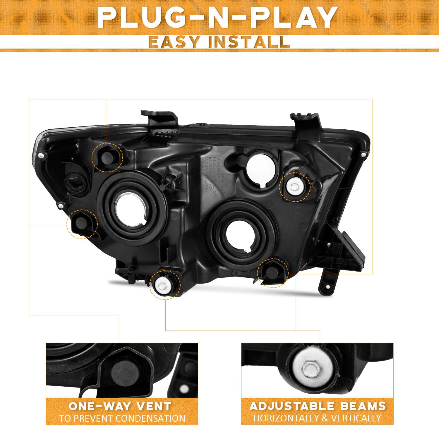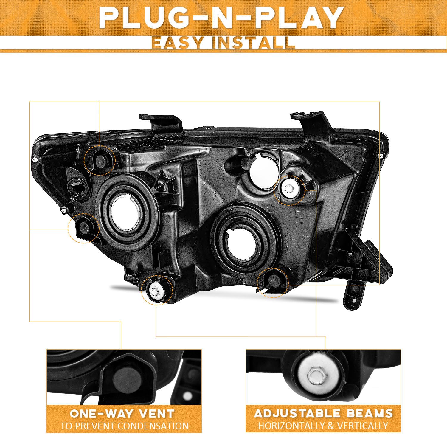 - [Tested for various impacts]: We use professional equipment to conduct drop, vibration, rain, ultraviolet radiation, sand and dust spray tests. This allows us to design our products optimally and only use high-durability materials to achieve a long lifespan for our replacement headlights