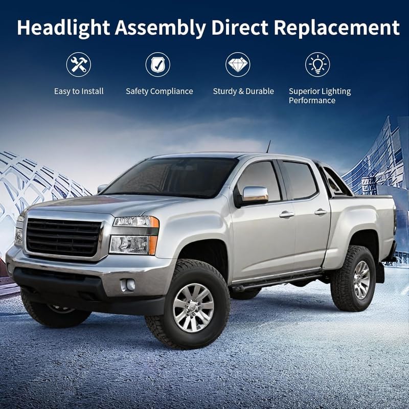 Headlights Assembly Compatible with 2004-2012 Chevy Colorado GMC Canyon, 2006-2008 Isuzu i-Series Replacement (Left + Right Side)