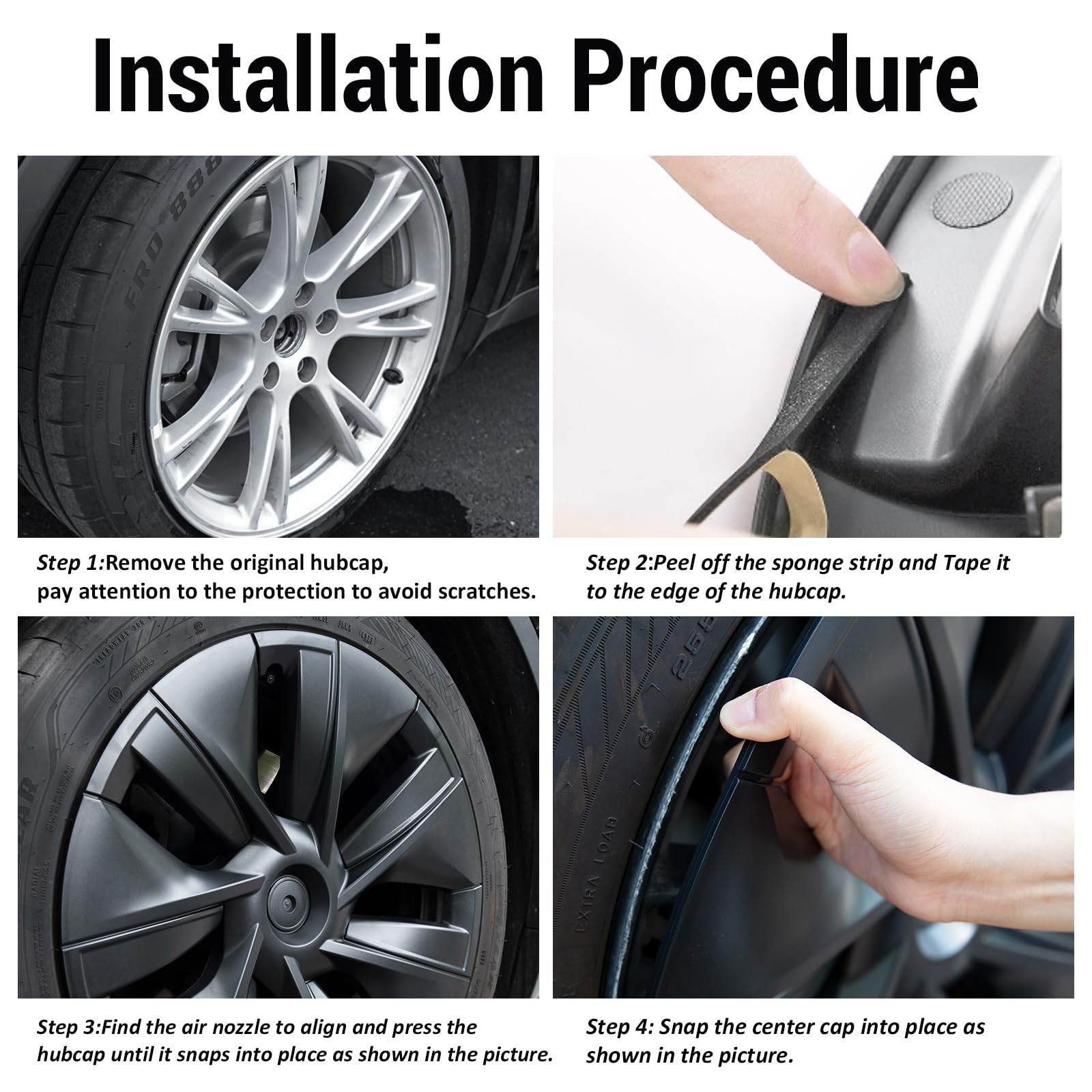 - 【Snap-in design&Easy to install】 With snap design, the Tesla Y wheel hub caps fits tightly to the original car and not easy to detach during driving. The package contains sponge tape to protect the wheels from scratches and make the wheel hub covers easier to remove. You can check the seventh picture for installation instructions, if you have any questions please contact us immediately, we are online at any time to answer your questions!
