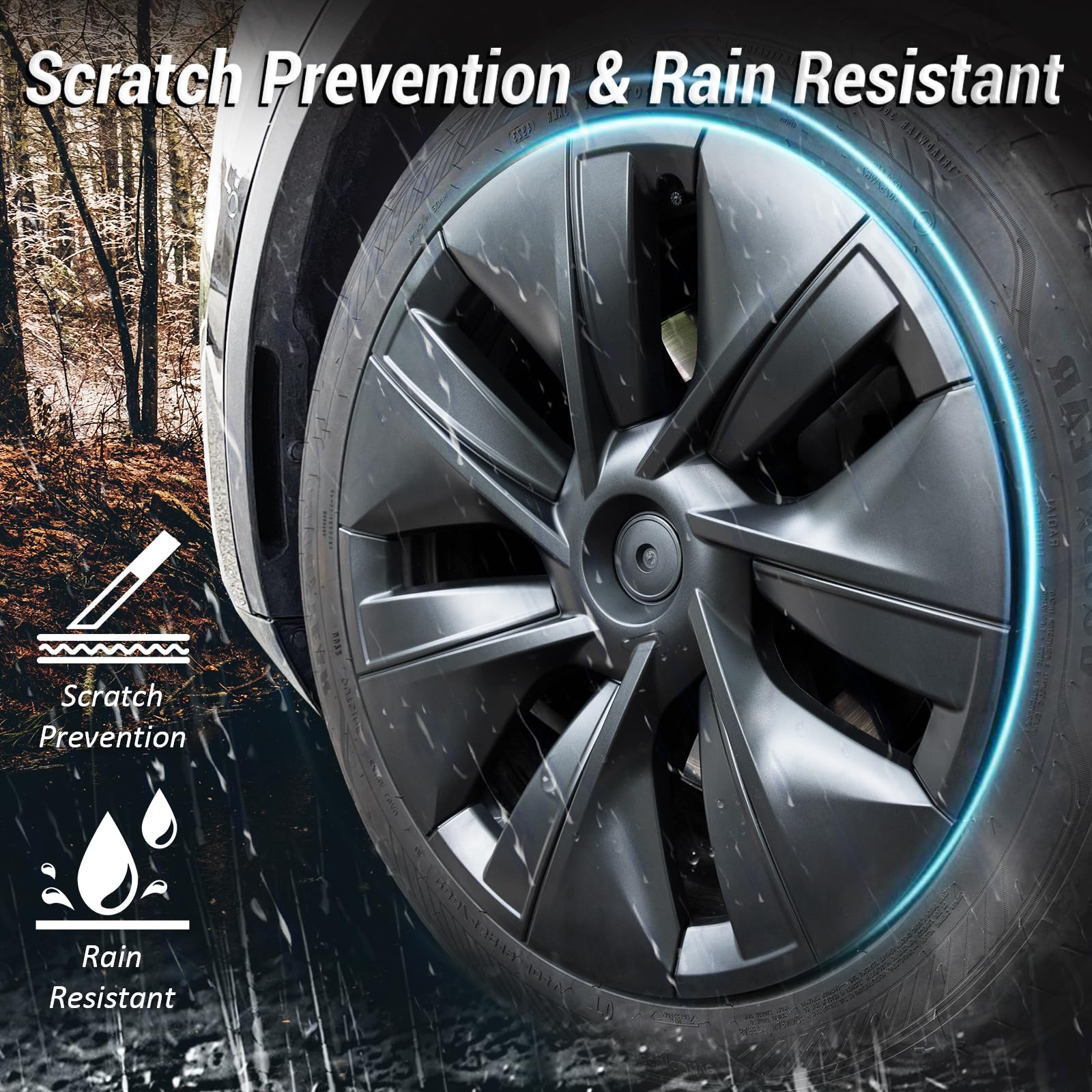 - 【Multi-Protection&Waterproof】 With edges slightly wider than the original hubcaps, the full wrap hubcaps protect the wheels from scratching and damaging, whether it's a small scrape or a minor bump. It also hides the scratches of previous wheel caps and makes your Model Y look brand new. Featuring a waterproof and rustproof design, it is not afraid of rain.