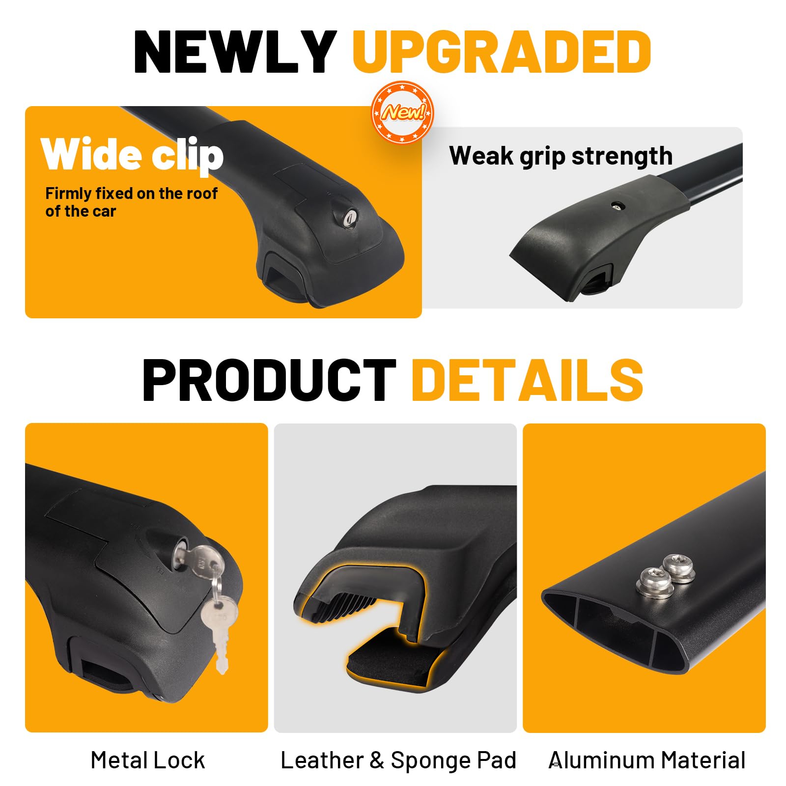 - 【MATERIALS AND DETAILS】 Crafted from high-quality aluminum alloy for enhanced strength, safety, and long-lasting durability. The bases are made of robust plastic to maintain a lightweight structure without compromising stability. To ensure a perfect fit and protect your vehicle’s paint, we include sponge pads for the side rail connections, preventing scratches and providing a tight, secure installation