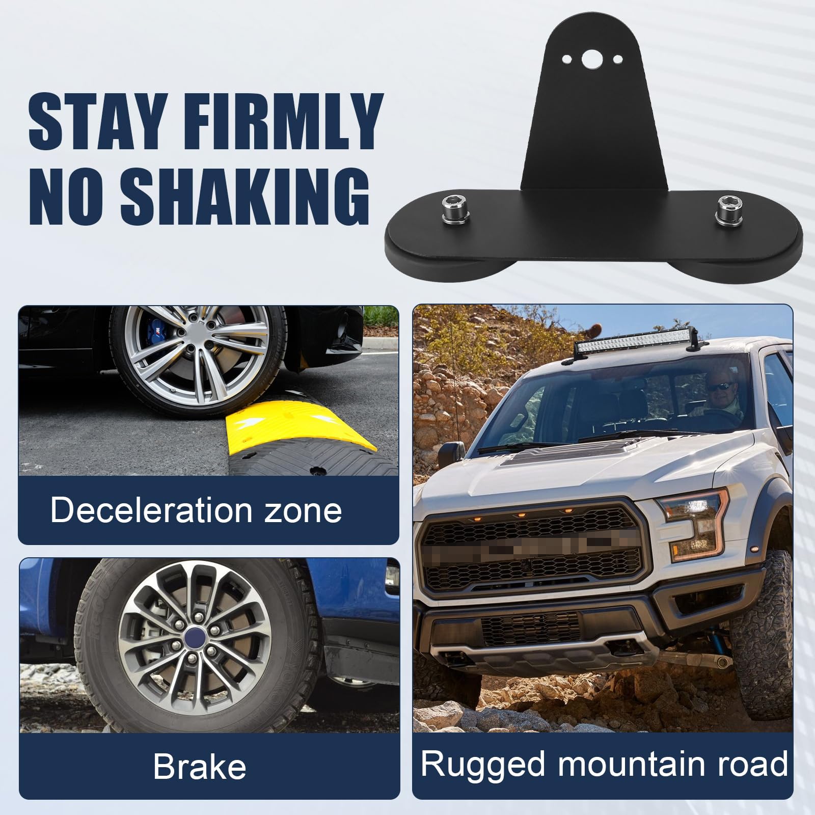 - 【High Compatibility】 Can be used on the hood or roof to mount bottom-mounted, side-mounted light bars, straight or curved, single row, double row, triple row, or quad row. As long as the light screw fits on the magnetic base 0.34 inch hole. Still remain ample room to adjust the mounting angle of the light