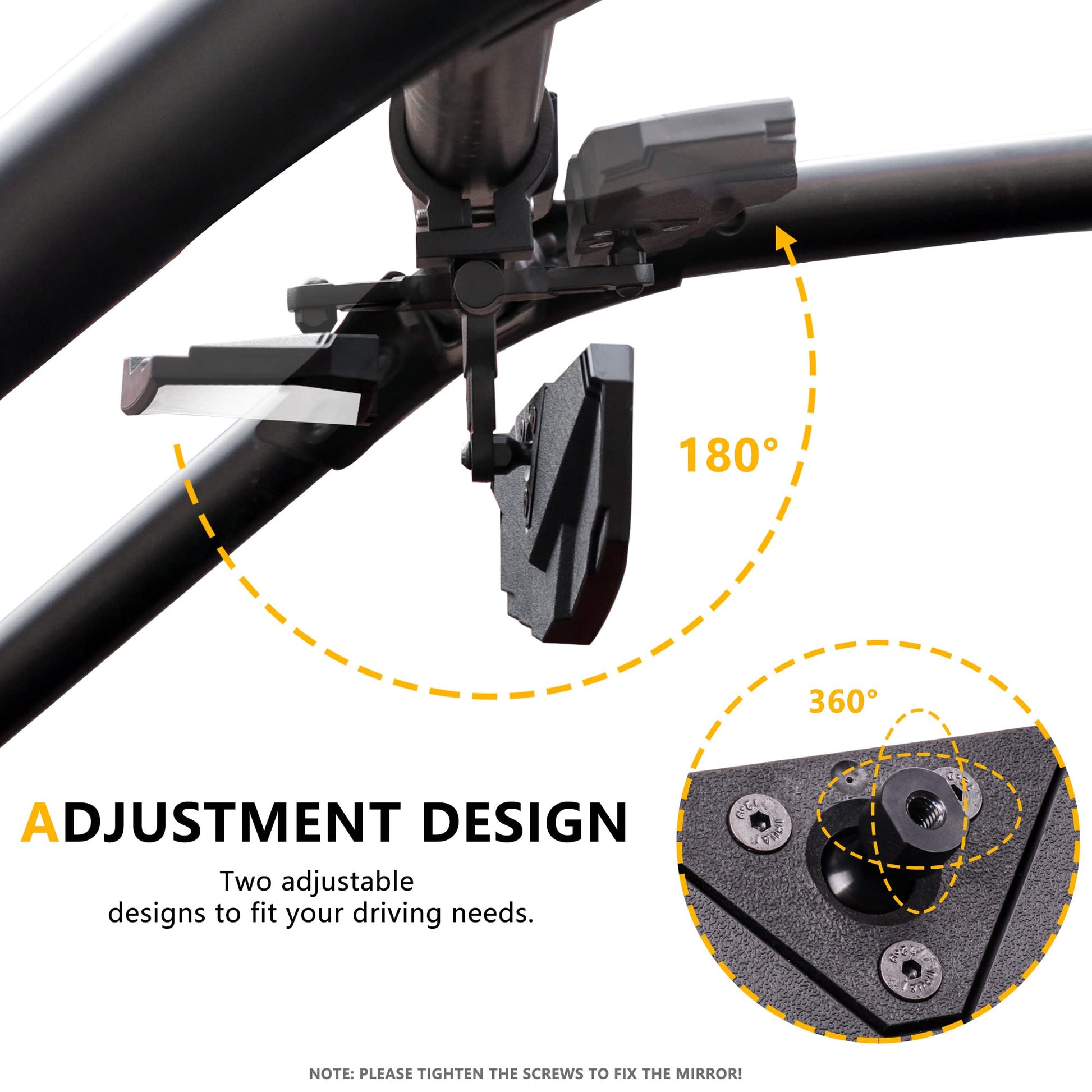 - 【360° ADJUSTMENT】 UTV center rearview mirror with 360° adjustable ball pivot and 180 adjustable mounting bracket, you can easily adjust the mirror angle up, down, left, right to fit your driving needs