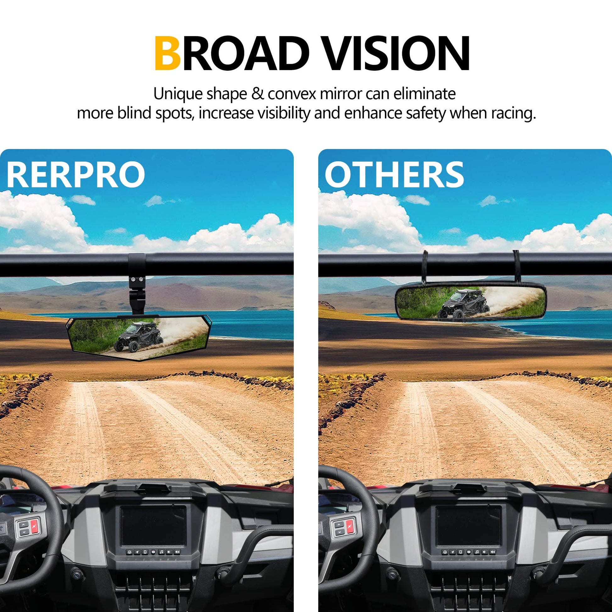 - 【WIDEN VISION】 RZR center rearview mirror with a unique shape & convex mirror has a wide-angle which can avoid most of the blind spots, increase the visible range to improve your security